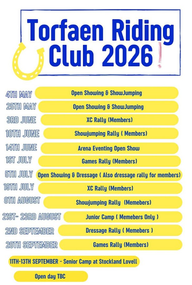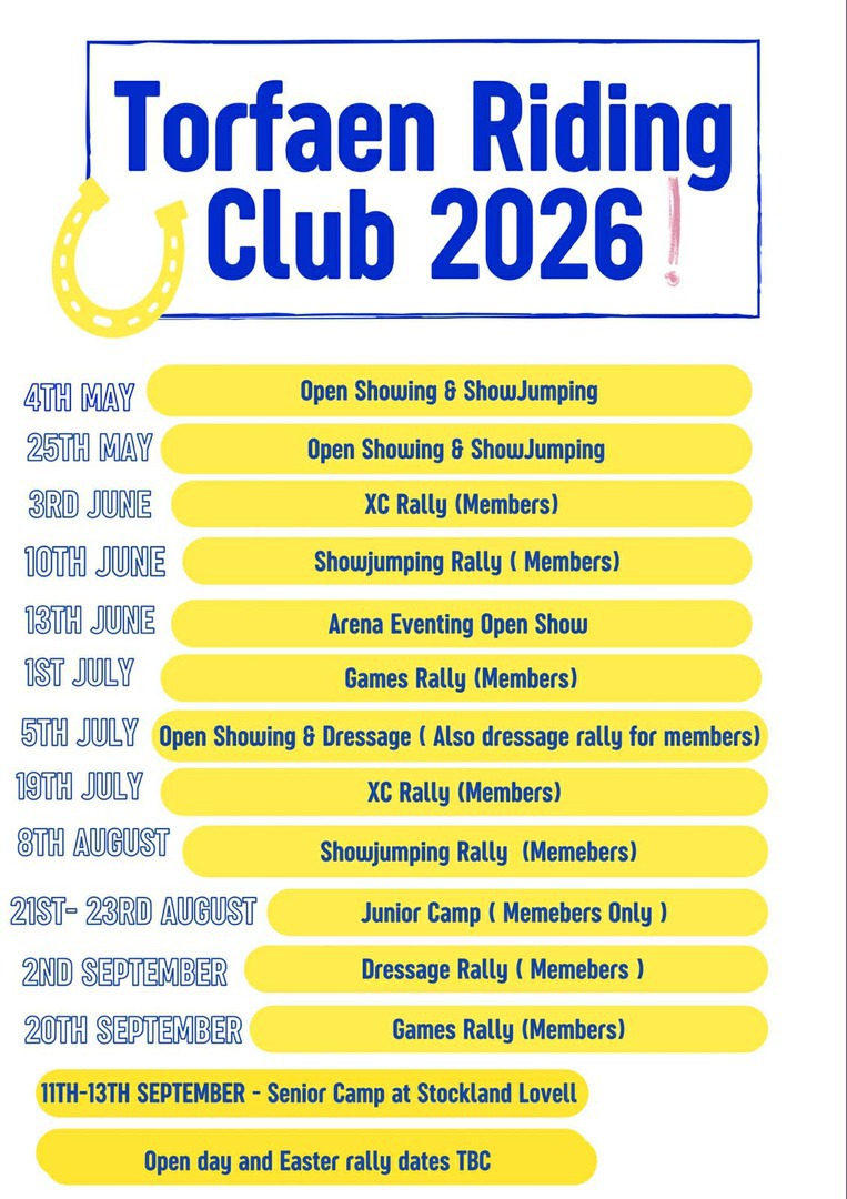 It's not too late to sign up to become a member and be able to take advantage of all these events - simply follow the link and select Torfaen Riding Club: https://britishridingclubs.sport80.com